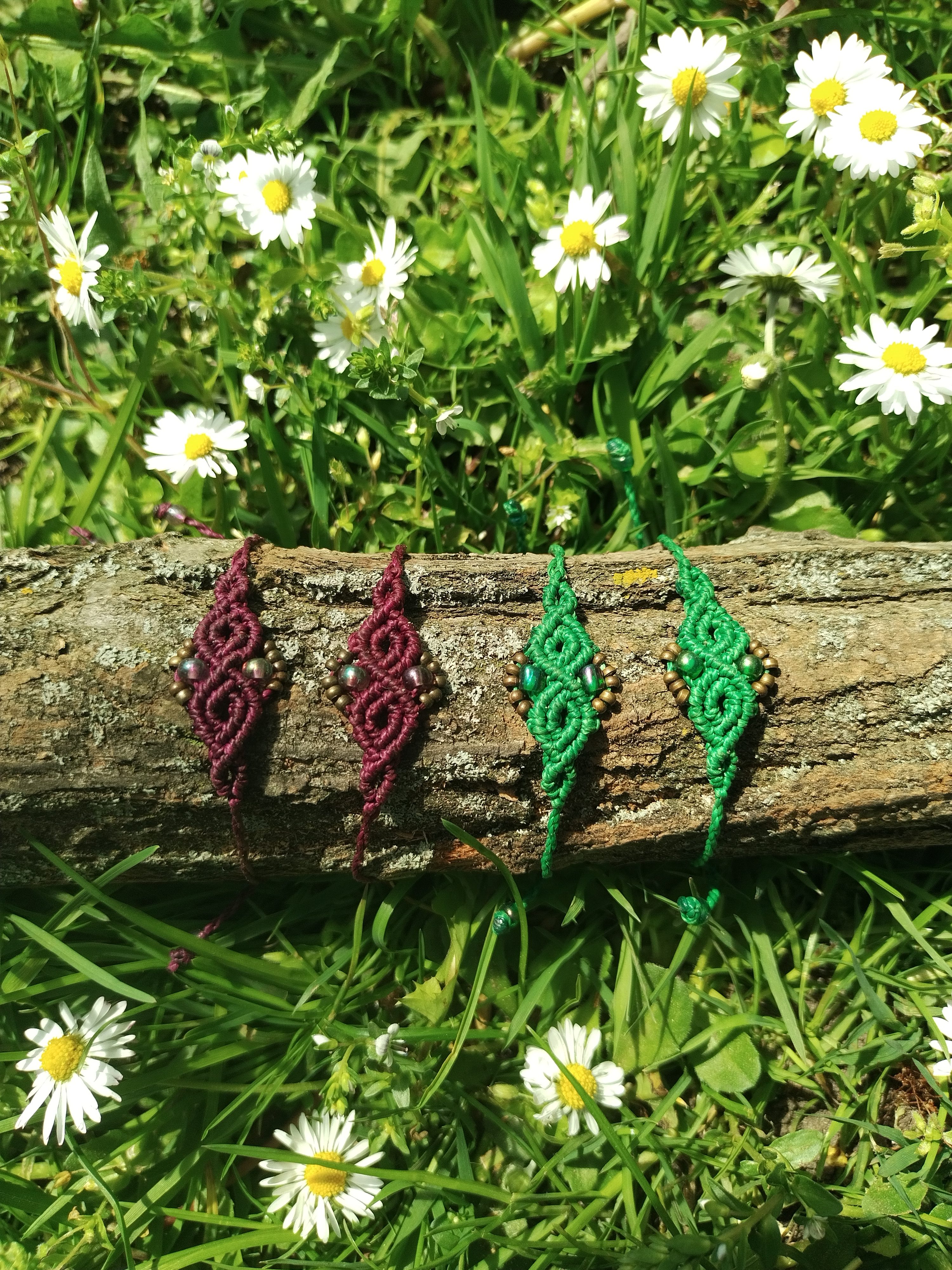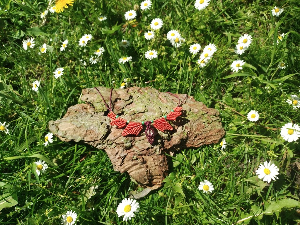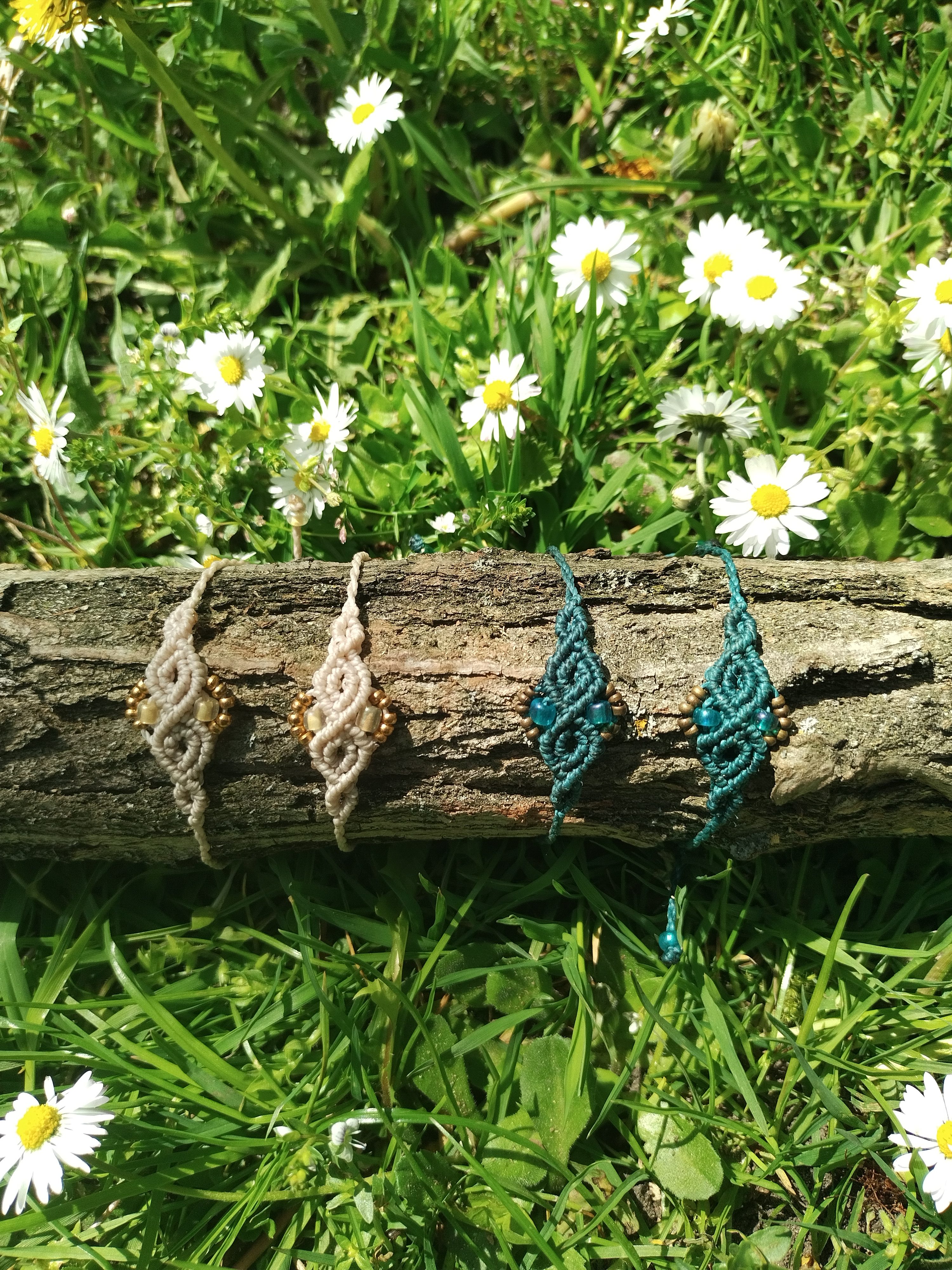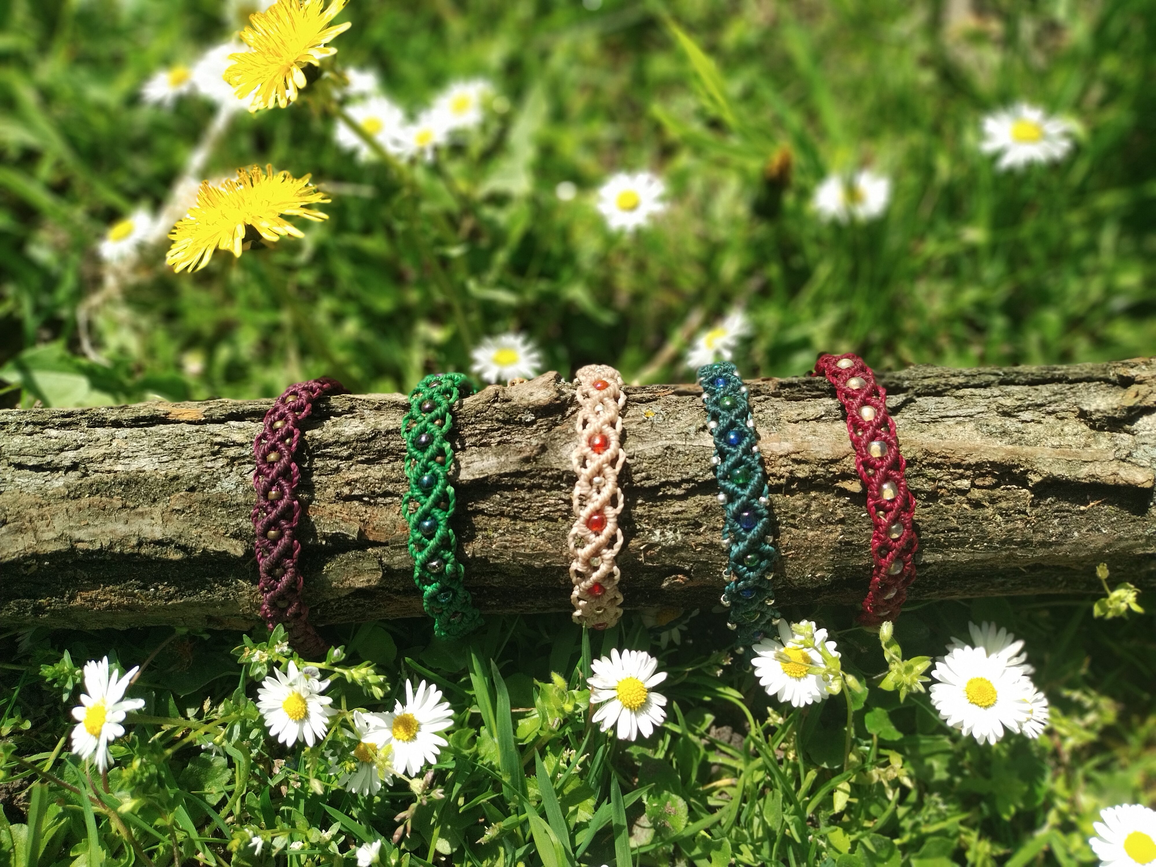 Makramee bietet mir die Möglichkeit mich kreativ zu betätigen wenn ich unterwegs bin und nicht viel Gepäck dabei habe. In einem meditativen Zustand der Hingabe und Demut fertige ich diese Kunstwerke an. Die unendlichen Möglichkeiten des verknüpfens lassen so manches Werk zum Unikat werden, denn oft passiert es das ich aus einer Laune heraus ein Schmuckstück improvisiere.